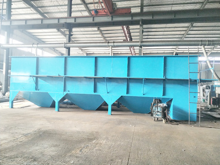 沉淀池由反应区和澄清区两部分组成。反应区包括混合反应区和推流反应区;澄清区包括入口预沉区、斜管沉淀区浓缩区及清水区。 在混合反应区内,靠搅拌器的提升混合作用完成泥渣、药剂、原水的快速凝聚反应,然后经叶轮提升至推流反应区进行慢速絮凝反应,以结成较大的絮凝体。整个反应区(混合和推流反应区)可获得大量高密度均质的矾花,这种高密度的矾花使得污泥在沉淀区的沉降速度较快,而不影响出水水质。在澄清区,矾花慢速地从预沉区进入到沉淀区使大部分矾花在预沉区沉淀,剩余矾花进入斜管沉淀区完成剩余矾花沉淀过程。矾花在沉淀区下部累积成污泥并浓缩。澄清水通过集水槽收集进入后续处理构筑物。